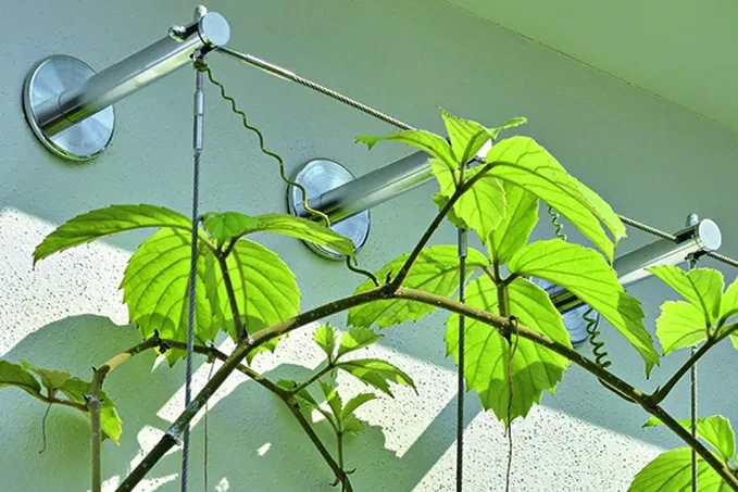 Easy design, and quick installation of lightweight aluminum standoffs for small and mid-size facade greenery applications.